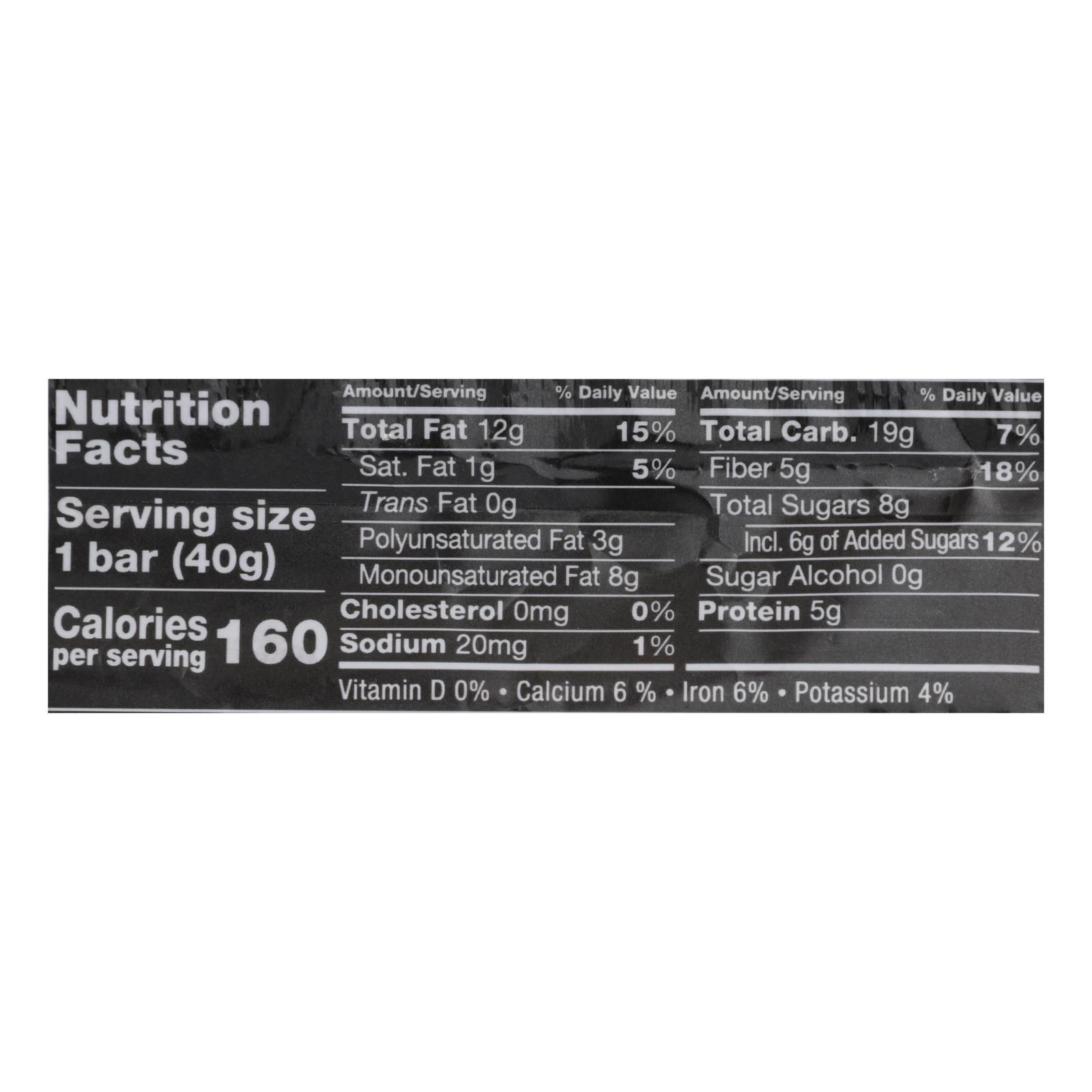 0 g trans fat. 13 fat per bar. No 1 ingredient heart healthy almonds .gluten free. 57% nuts & 11 fruit. 25% less sugar than the average nutrition bar (this bar contains 8 g sugar. The average nutrition bar contains 11 g sugar). Low glycemic index. Good source of fiber. No genetically engineered ingredients. Kindsnacks.com. Made in usa with domestic and imported ingredients.