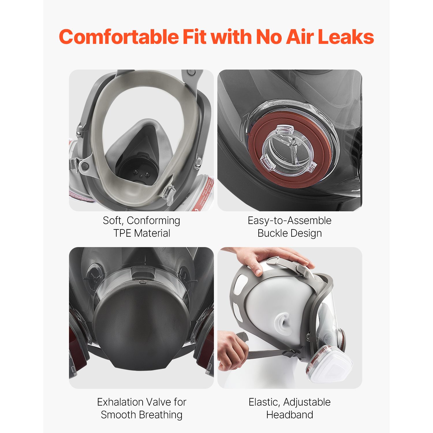2.Ergonomic, Leak-Proof Fit: Designed with a soft TPE sealing gasket that conforms to various face shapes for a secure, leak-free seal. The adjustable head strap of the paint respirator mask easily adapts to different head sizes and preferences, ensuring stable and comfortable wear during any activity