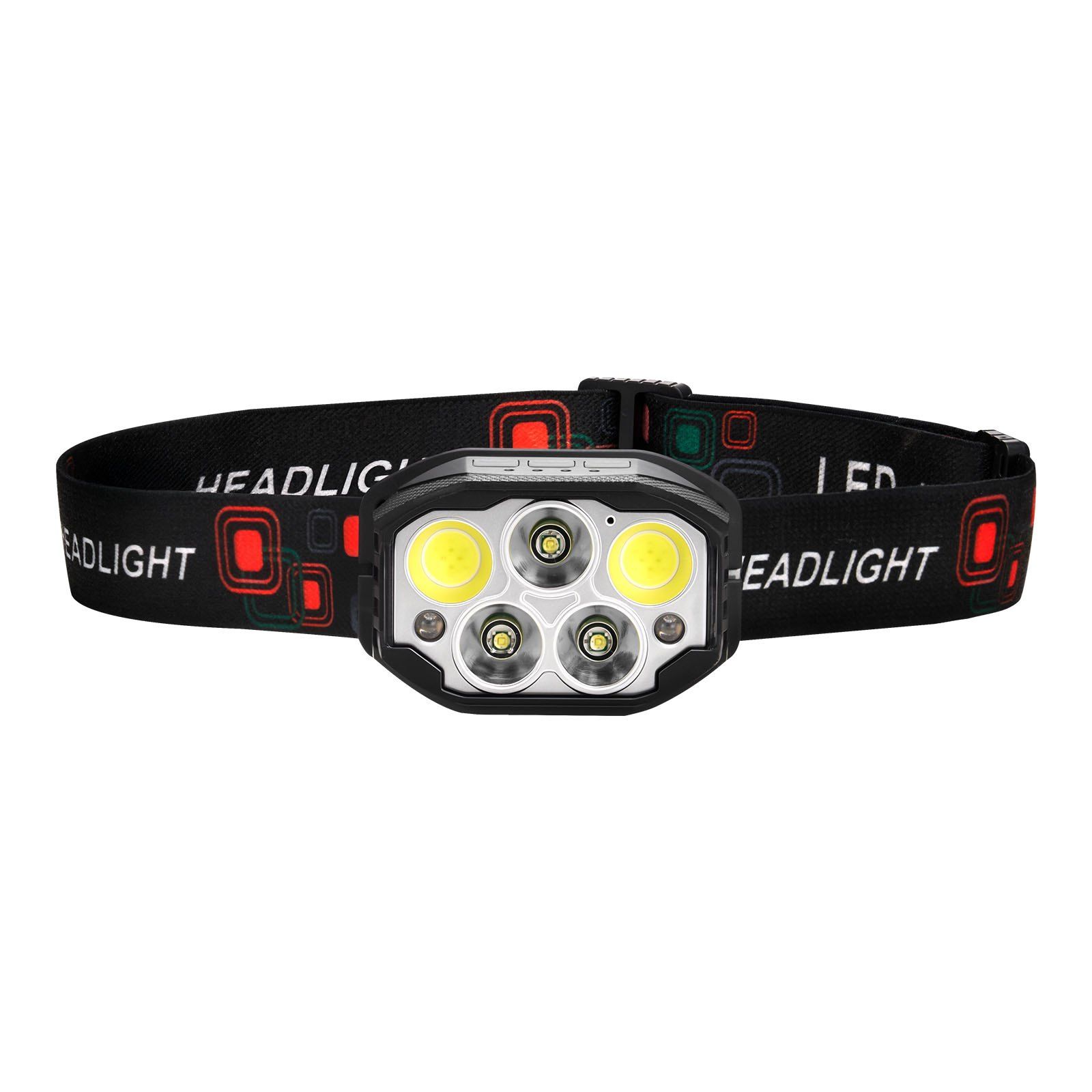 The headlight features three separate buttons for power, motion sensor, and mode selection. Easily switch between 12 lighting modes including XPE, COB, and red light to match any environment or task.