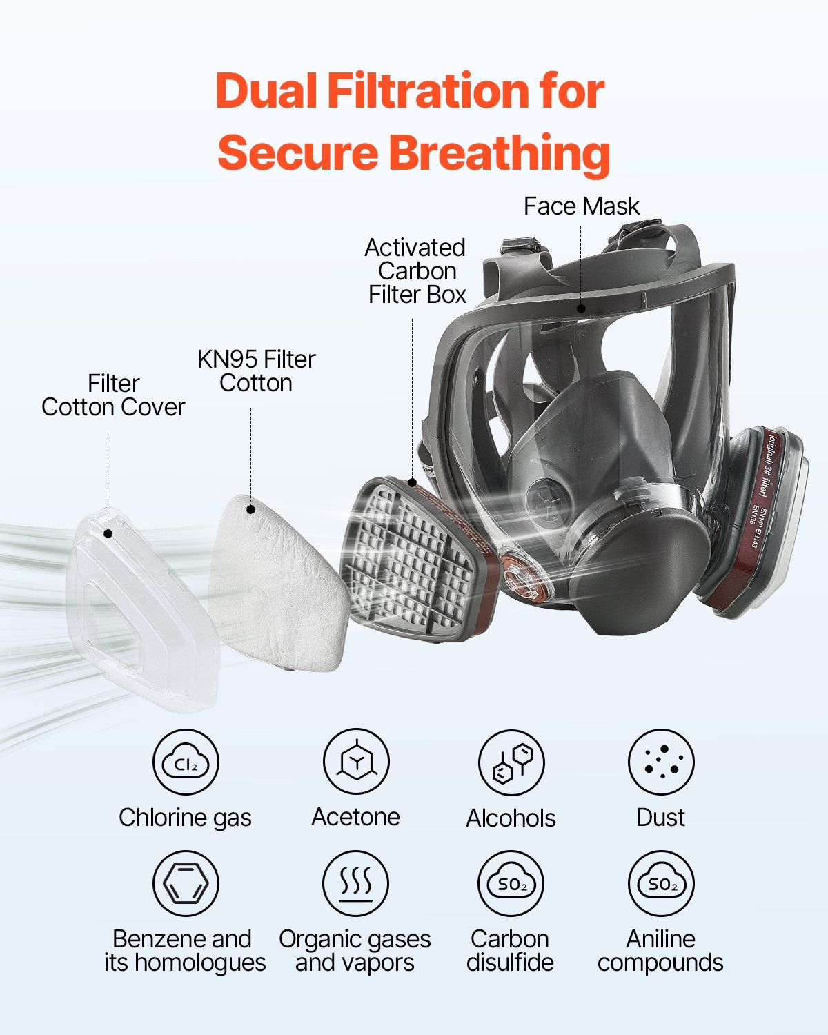 5.Versatile Applications: Simple to assemble and use, our hazmat mask is ideal for multiple work environments, including automotive painting, mining, spraying, indoor renovations, and printing/dyeing operations. It ensures comprehensive, efficient protection during all your work tasks